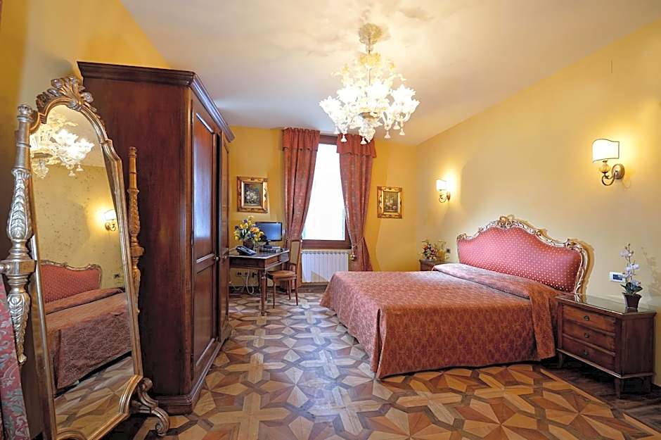 Air-conditioned room with refined furniture and Murano-glass lamps. Please note that some rooms cannot be reached by elevator. Some rooms are located in the depandance.